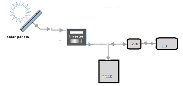 This system does not provide backup power during power cuts ( even if sun is shining). But for the sites with reliable grid power and the day time usage are high, this is usually logical and economically viable system choice.